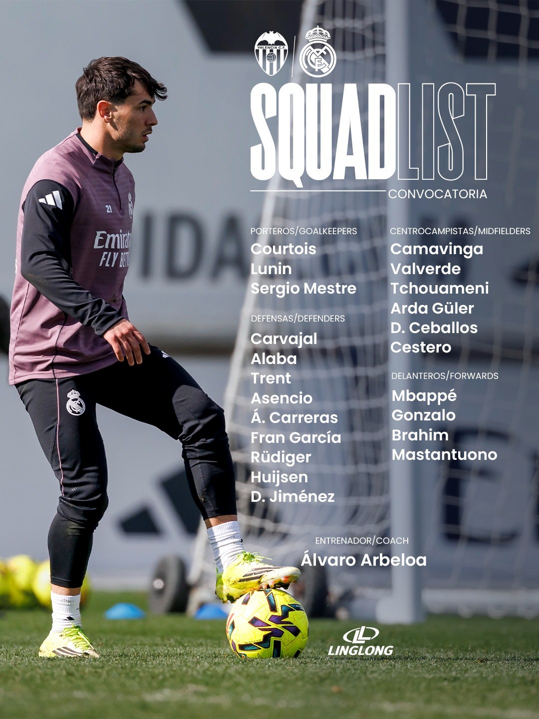 北京时间明天凌晨4点,皇马将迎来西甲第23轮客场对阵瓦伦西亚的比赛,赛前,皇马官方公布了本场比赛的大名单,其中阿诺德、吕迪格回归,罗德里戈、贝林厄姆伤缺,维尼修斯停赛。皇马客战瓦伦西亚大名单:门将:库尔图瓦、卢宁、梅斯特雷后卫:卡瓦哈尔、阿拉巴、阿诺德、劳尔-阿森西奥、阿尔瓦罗-卡雷拉斯、弗兰-加西亚、吕迪格、赫伊森、戴维-希门尼斯中场:卡马文加、巴尔韦德、楚阿梅尼、居莱尔、塞瓦略斯、豪尔赫-塞斯